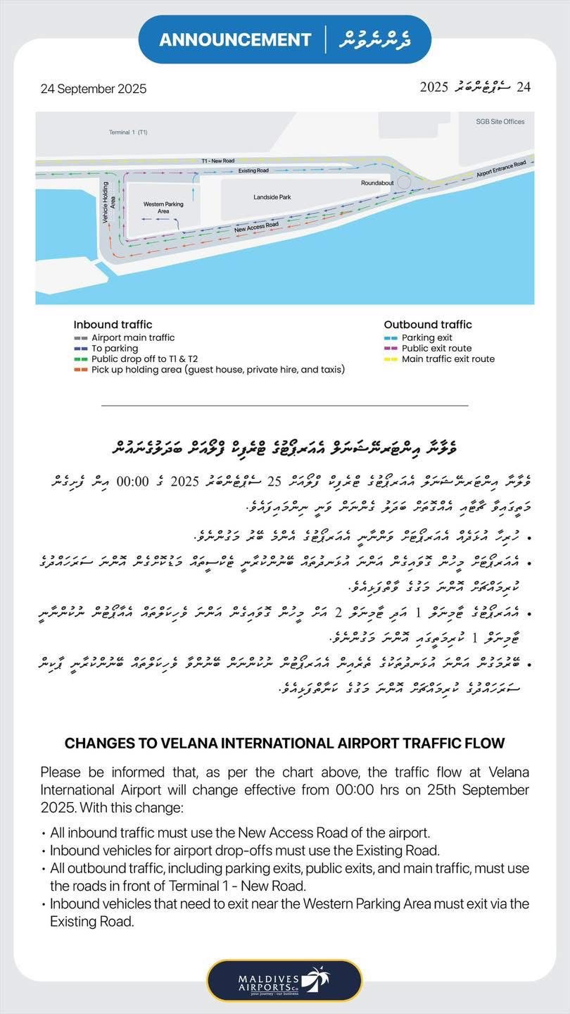 މި ބަދަލާއެކު މީހުން ގޮވައިގެން އެއާޕޯޓަށް ދާ އުޅަނދުތަކުން ބޭނުން ކުރާނީ ޓެކްސީތައް މަޑުކުރާ ސަރަހައްދުގެ ކުރިމައްޗަށް އޮންނަ މަގުގެ ވާތްފަރާތެވެ.