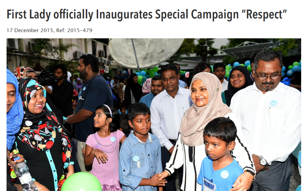 މިގޮތުން ރައީސް ޔާމީންގެ ލަފާފުޅާއި އިރުޝާދުގެ ދަށުން ޕަބްލިކް ސާވިސް މީޑިއާއިން އިސްނަގައިގެން ކުރިއަށް ގެންދިޔަ "ރެސްޕެކްޓް" މަޝްރޫއު ފަސްޓް ލޭޑީ ފާތިމަތު އިބްރާހީމް ވަނީ 2015 އަހަރު ޑިސެމްވަރު މަހުގައި ރަސްމީކޮށް އިފްތިތާޙްކޮށްދެއްވާފައެވެ.