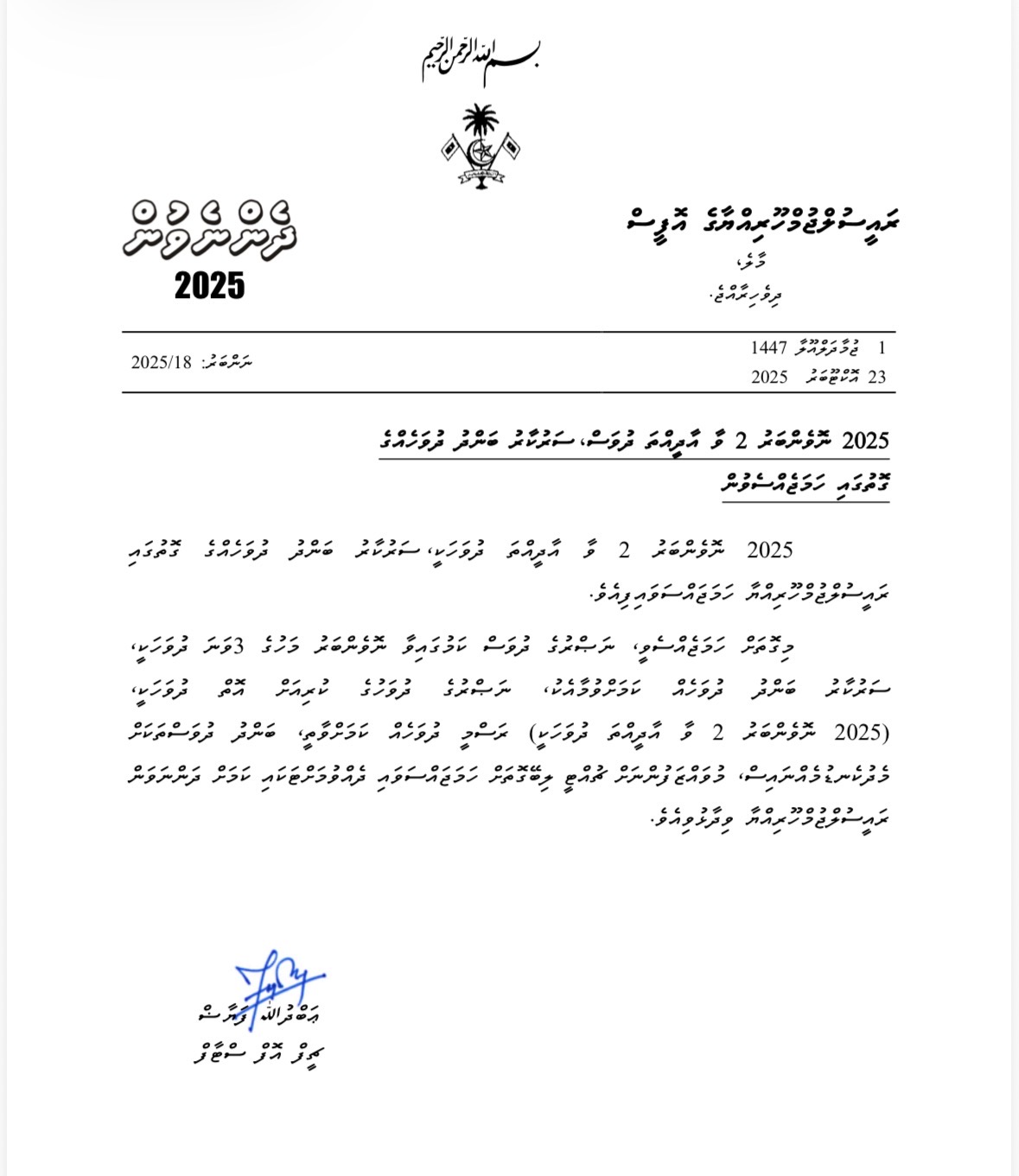 ރައީސް އޮފީހުން ކުރި އިއުލާނެއްގައި ބުނެފައިވަނީ މި އަހަރުގެ ނޮވެމްބަރު 2 ވާ އާދިއްތަ ދުވަހަކީ ސަރުކާރު ބަންދު ދުވަހެއްގެ ގޮތުގައި ރައީސް މުއިއްޒު ހަމަޖައްސަވާފައިވާ ކަމަށެވެ.