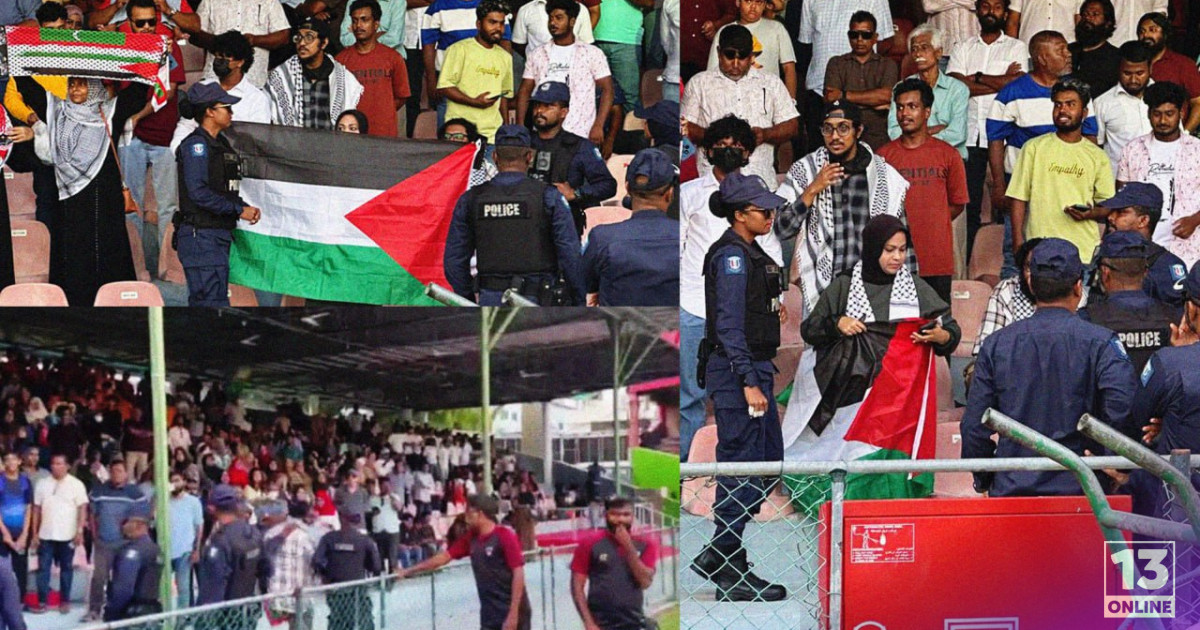މަންޒަރު ފެންނަ ގޮތުގައި “ފީފާ އިން އިޒްރޭލް ބޭން” ޖަހާފައިވަާ ޕޯސްޓަރުތަކާއި ބެނާތައް ދިވެހިން އަންނަނީ ބޭނުންކުރަމުންނެވެ. އަދި ގިނަ އަދަދެއްގެ ފަލަސްތީނުގެ ދިދަތައްވެސް ދަނޑުތެރެއިން ފެނިގެންދެއެވެ.