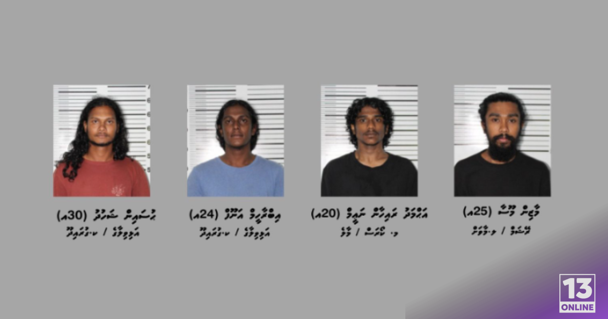 މި މައްސަލައިގެ ތުހުމަތަށް ހައްޔަރު ކޮށްފައިވަނީ ރޭޝަމް / ލ.މާވަށް، މާޒިން މޫސާ (25އ) އާއި މ. ކޯރަސް / މާލެ، އަޙްމަދު ރައިހާން ނަޢީމް (20އ)، އަޅިވިލާގެ / ކ.ގުރައިދޫ، އިބްރާހީމް އަނޫފް (24އ) އަދި އަޅިވިލާގެ / ކ.ގުރައިދޫ، ޙުސައިން ޝަހުދު (30އ) އެވެ.