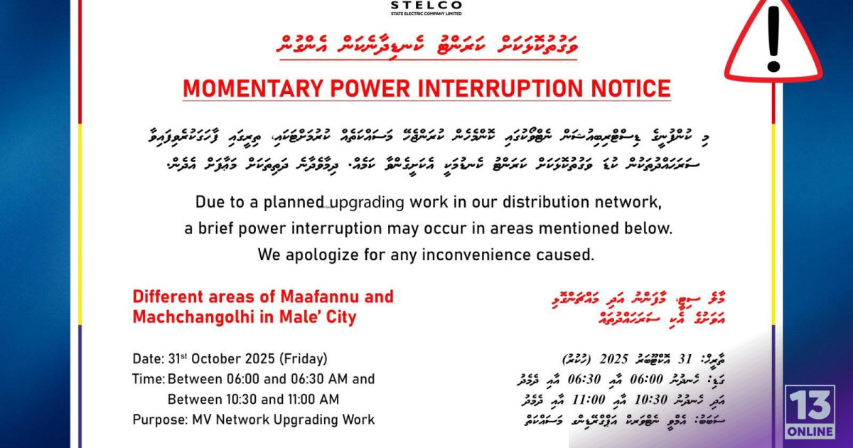 ސަރުކާރުން ކަރަންޓް ކެނޑުމުގެ ސިލްސިލާ ޕްރޮގްރާމްގެ ތެރެއިން މިއަދުވެސް މާލޭގެ ސަރަހައްދުތަކުން ކަރަންޓް ކަނޑާލައިފިއެވެ.