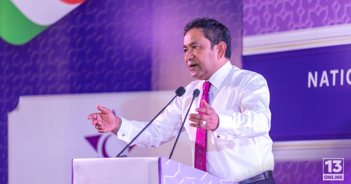 ރައީސް ޔާމީން މިފަދައިން ވިދާޅުވެފައިވަނީ ޕީޕަލްސް ނެޝަނަލް ފްރޮންޓް (ޕީއެންއެފް) އިން ބޭއްވި އެ ޕާޓީގެ ގައުމީ މަޖިލީހުގައި ވާހަކަފުޅު ދައްކަވަމުންނެވެ.