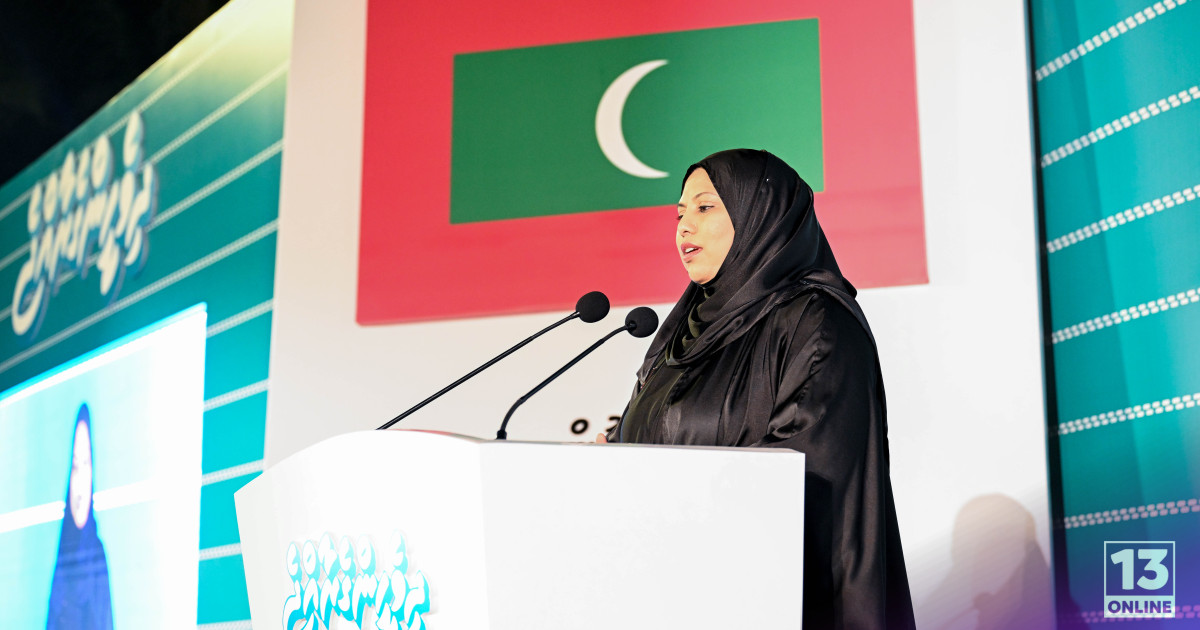 ޕީއެންސީ ޖަލްސާގައި އަންހެން ކާޑު ކުޅެން އުޅެގެން ރައީސް މުހައްމަދު މުއިއްޒުގެ ތަރުޖަމާނު ހީނާ ވަލީދަށް މީހުން ބަވަން ފަށައިފިއެވެ.
