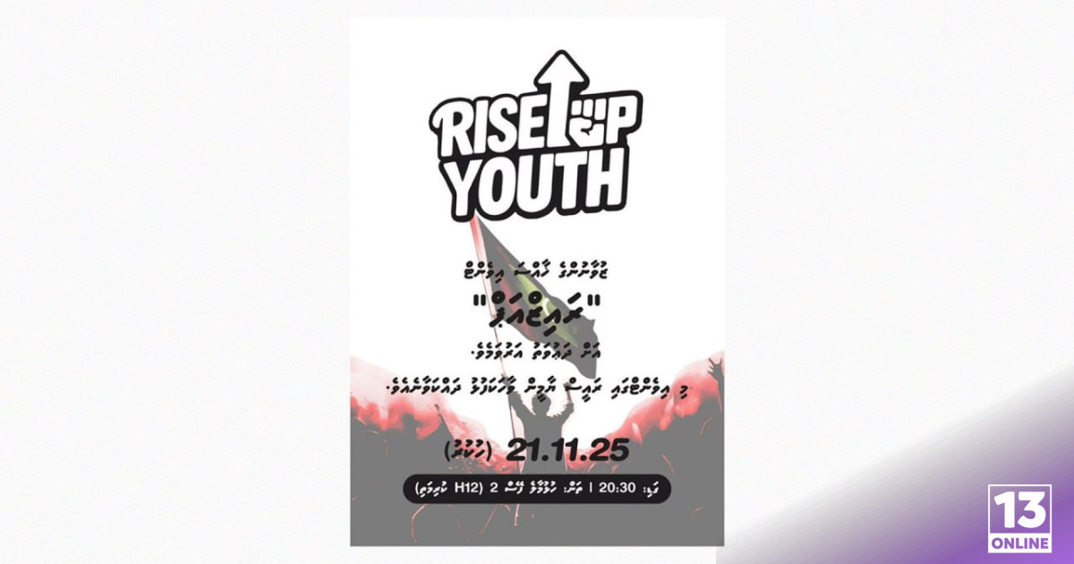 ޒުވާނުންތަކެއްގެ އަމިއްލަ އިސްނެގުމާ އެކު ބާއްވާ މި ހަރަކާތް އޮންނާނީ 21 ނޮވެމްބަރު 2025 ވާ ހުކުރު ދުވަހުގެރޭ ހުޅުމާލޭ ފޭސް 2ގެ ހިޔާ ޓަވަރު 12 އަ ދިމާލުގައި ކަމަށް އެ ހަރަކާތް އިންތިޒާމުކުރާ ފަރާތްތަކުން މައުލޫމާތު ދީފައިވެއެވެ.