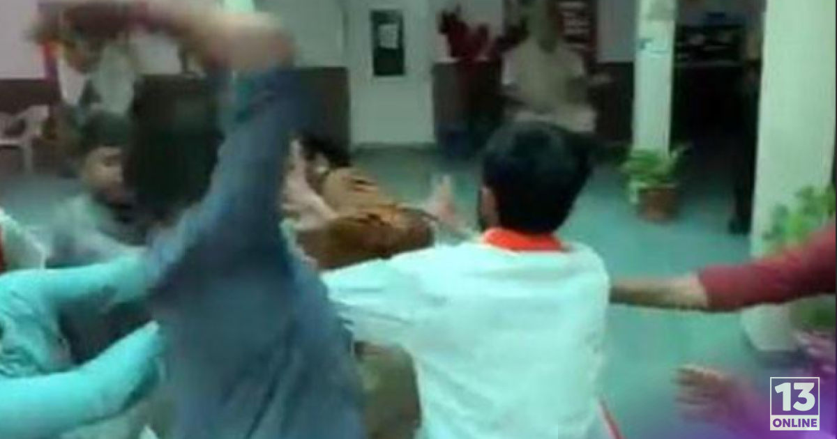 ޓީޗަރަށް އަނިޔާކޮށް "ޖައި ޝްރީ ރާމް" ކިޔާ ހަޅޭލަވާ މަންޒަރު ސޯޝަލް މީޑިއާގައި ދައުރުވަމުން އަންނަ ވީޑިއޯއިން ފެނިފައިވެއެވެ. މީގެ އިތުރުން، އޭނާގެ ވަށައިގެން ބޮޑެތި ފިރިހެނުންނެއް، ޖެއްސުންކޮށް، ކަކޫ މައްޗަށް ތިރިކުރުވަން ޕްރެޝަރު ކުރާއިރު، ދެން ތިބި މީހުން ދިޔައީ އެ މަންޒަރު ވީޑިއޯ ކުރަމުންނެވެ. ކައިރިގައި ފުލުހުންވެސް ކުޅި ބަލަން ތިބޭ މަންޒަރުވެސް ފެނިގެންދެއެވެ.