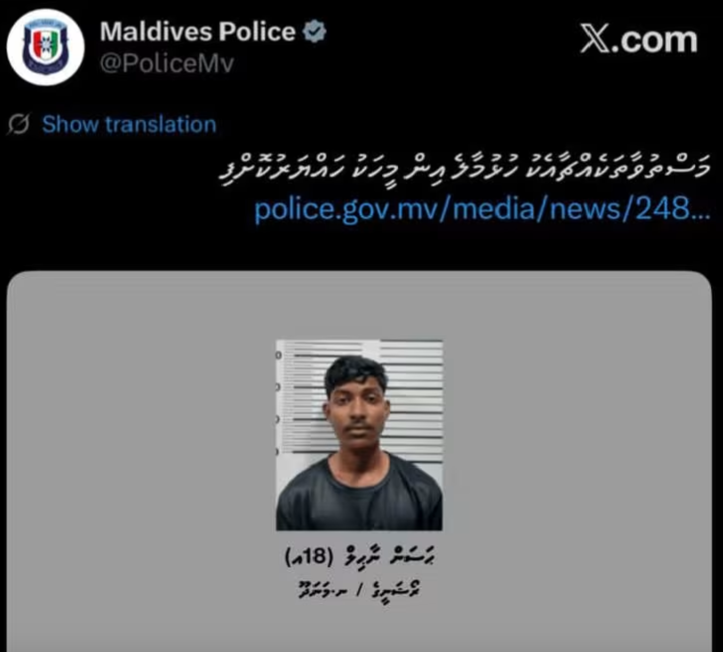ހަސަން ނާހިލް، 18، ރޯޝަނީގެ/ނ. މަނަދޫގެ މަސްތުވާތަކެއްޗާއެކު ހައްޔަރުކުރިކަން ފުލުހުން ހާމަކުރީ އާދިއްތަ ދުވަހުގެ ހެނދުނު 11:40 ގަ އެވެ. އޭނާ ހައްޔަރުކުރީ ހުޅުމާލެއިން 31 ގްރާމުގެ މަސްތުވާތަކެއްޗާ އެކު އެވެ.