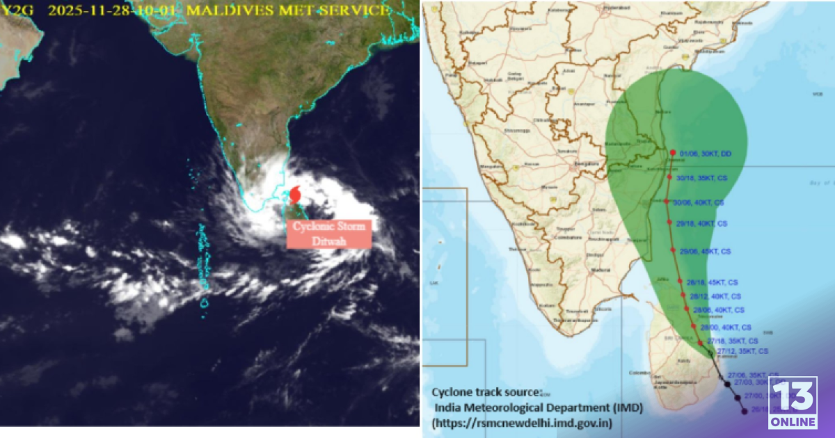 ސްރީލަންކާއަށް އަރާފައިވާ ތޫފާން "ޑިޓުވާ" މިހާރު ރާއްޖެއާއި ދުރަށް ދަތުރުކުރަން ފަށާފައިވާ ކަމަށާއި، މި ތޫފާނާއި ގުޅިގެން ކުރިއަށް އޮތް 24 ގަޑިއިރު ދެކުނާއި މެދުރާއްޖެ ތެރޭގެ އެކި ހިސާބަށް ވިއްސާރަ ކުރުމާއެކު ގުުގުރާނެ ކަމަށް ރާއްޖޭގެ މޫސުމާއި ބެހޭ ގައުމީ އިދާރާ (މެޓް) އިން ވިދާޅުވެއްޖެއެވެ.