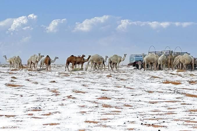 ހޫނު ގަދަކަމާއި ވެލީގެ ސަހަރާތަކަށް މަޝްހޫރު ސައުދީ އަރަބިއްޔާއަށް، ވޭތުވެދިޔަ ދުވަސްތަކުގެ ތެރޭގައި އާދަޔާ ޚިލާފަށް ބޯކޮށް ސްނޯ ފައިބައިފިއެވެ. މިކަމުގެ ސަބަބުން ގިނަ ބަޔަކަށް ވަނީ ހައިރާންކަން ލިބި މި ނާދިރު މަންޒަރުތައް ދެކިލުމަށް އެ ސަރަހައްދުތަކަށް ޖަމާވެފައެވެ.