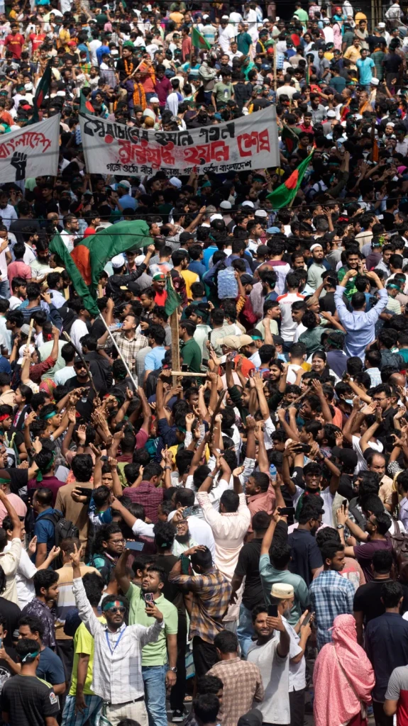 ބަންގްލަދޭޝްގެ ދަރިވަރުން ވަނީ މުޅި ގައުމުގައި ބޮޑެތި މުޒާހަރާތަކެއް ފަށާފައެވެ. މި މުޒާހަރާތަކުގެ މައިގަނޑު ސަބަބަކީ، ހިނގަމުންދާ ހަމަނުޖެހުންތަކުގެ ފަހަތުގައި އިންޑިއާގެ އަތެއްވާ ކަމަށް އެ ދަރިވަރުން ތުހުމަތުކުރުމެވެ. ދަރިވަރުން ވަނީ އިންޑިއާ ހައި ކޮމިޝަންގެ ބޭރުގައި ހިމެނޭ ގޮތަށް އެކި ސަރަޙައްދުތަކަށް އެއްވެ، އެމީހުންގެ ރުޅިވެރިކަމާއި ޝަކުވާތައް ފާޅުކޮށްފައެވެ.