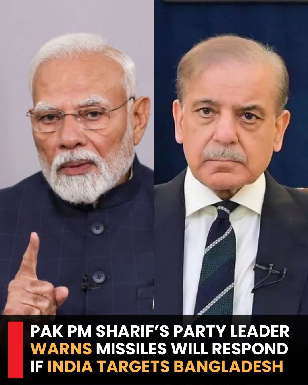 ދެކުނު އޭޝިއާގެ ސަރަޙައްދުގެ ސިޔާސީ ހޫނުކަން އިތުރުވެފައިވާ ދަނޑިވަޅެއްގައި، ޕާކިސްތާނުގެ ބޮޑުވަޒީރު ޝެހްބާޒް ޝާރިފްގެ ޕާޓީގެ އިސް ލީޑަރަކު ވަނީ އިންޑިއާއިން ބަންގްލަދޭޝްއަށް އަސްކަރީ ހަމަލާއެއް ދީފިނަމަ، ޕާކިސްތާނުން ބަންގްލަދޭޝް ދިފާއުކޮށްދޭނެ ކަމަށް ވަރުގަދަ އިންޒާރެއް ދެއްވާފައެވެ. މި އިންޒާރު ދީފައިވަނީ އިންޑިއާގެ ބާރުތައް ބަންގްލަދޭޝްގެ ސިޔާސަތުތަކަށް ނުފޫޒު ފޯރުވުމާ ގުޅޭ ގޮތުން ހުރި ކަންބޮޑުވުންތަކެއްގެ ތެރޭގައެވެ.