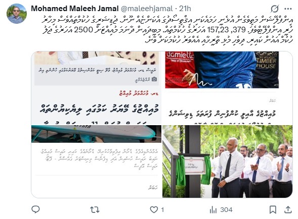 ސޯޝަލް މީޑިއާގައި ކުރެއްވި ޕޯސްޓެއްގައި މަލީހް ފާހަގަކުރެއްވި ގޮތުގައި، މިހާރު ރާއްޖޭގައި އިންފްލޭޝަން ނުވަތަ އަގުތައް މަތިވަމުންދަނީ ހަމައެކަނި އިޤްތިޞާދީ ދާއިރާއިން އެކަނި ނޫން ކަމަށެވެ. އޭގެ ބަދަލުގައި ޖުޑިޝަރީ ނުވަތަ ޝަރުޢީ ދާއިރާއިން އިއްވާ ހުކުމްތައް ވެސް މިހާރު ހުރީ "އިންފްލޭޓް" ވެފައި ނުވަތަ އާދަޔާ ޚިލާފަށް މަތިވެފައި ކަމަށް އޭނާ ވިދާޅުވިއެވެ.